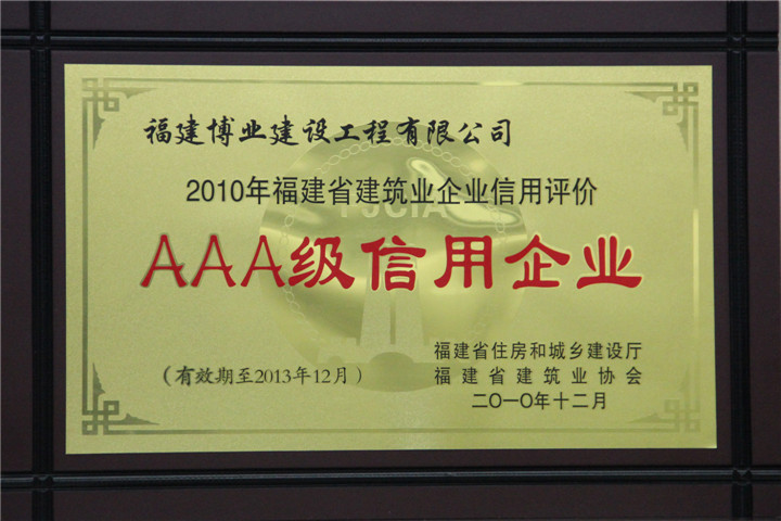 2010年福建省建筑業(yè)信用評價AAA級信用企業(yè)