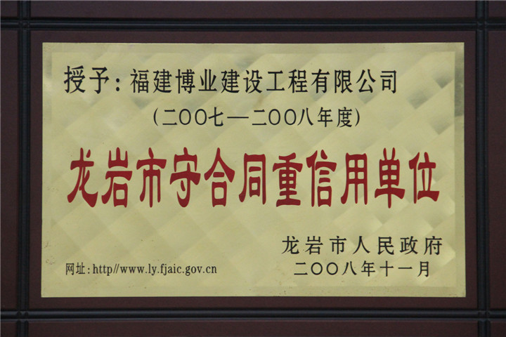 2007-2008年度龍巖市守合同重信用企業(yè)