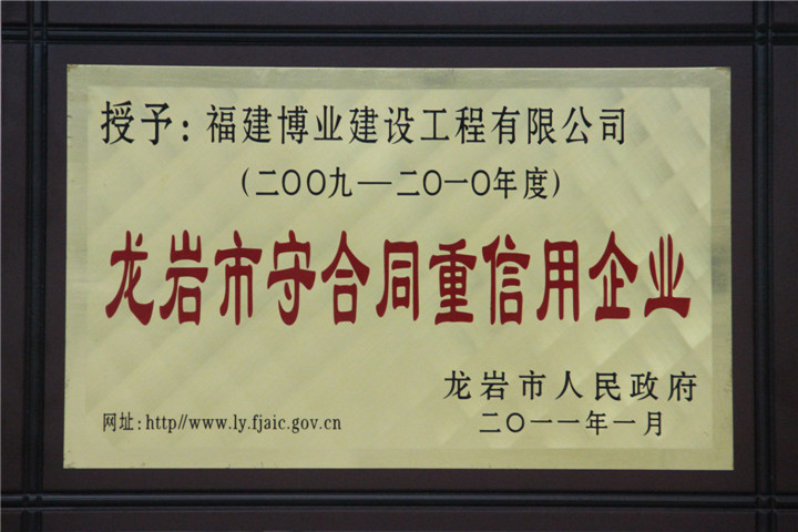 2009-2010年度龍巖市守合同重信用企業(yè)