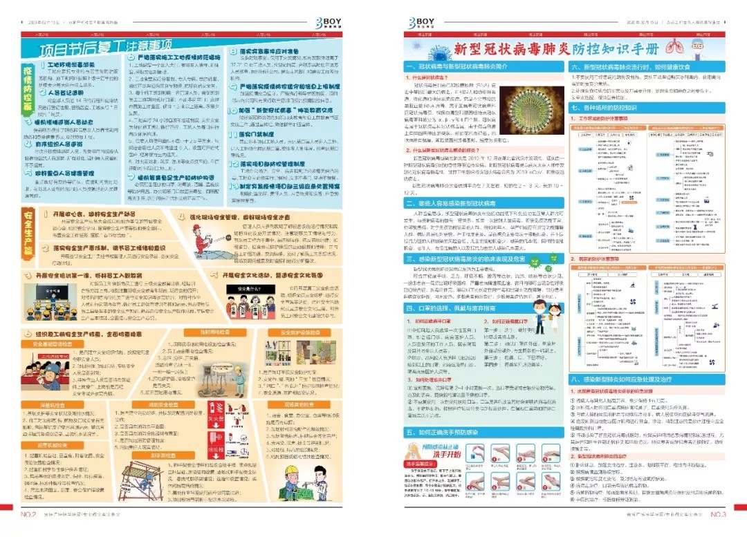 疫情期間,公司組織編輯并提前發(fā)行企業(yè)內(nèi)刊《博業(yè)人》,專版策劃《項(xiàng)目節(jié)后復(fù)工注意事項(xiàng)》、《新型冠狀病毒肺炎防控知識(shí)手冊(cè)》等版面內(nèi)容。同時(shí),通過企業(yè)網(wǎng)站、廣告機(jī)、海報(bào)等各類媒介加強(qiáng)疫情防控宣傳,總部及各項(xiàng)目在辦公區(qū)、出入口等區(qū)域顯著位置張貼宣傳海報(bào)和滾動(dòng)播放防疫知識(shí)宣傳視頻,切實(shí)提高員工的防范意識(shí)和群防群控的自覺性。