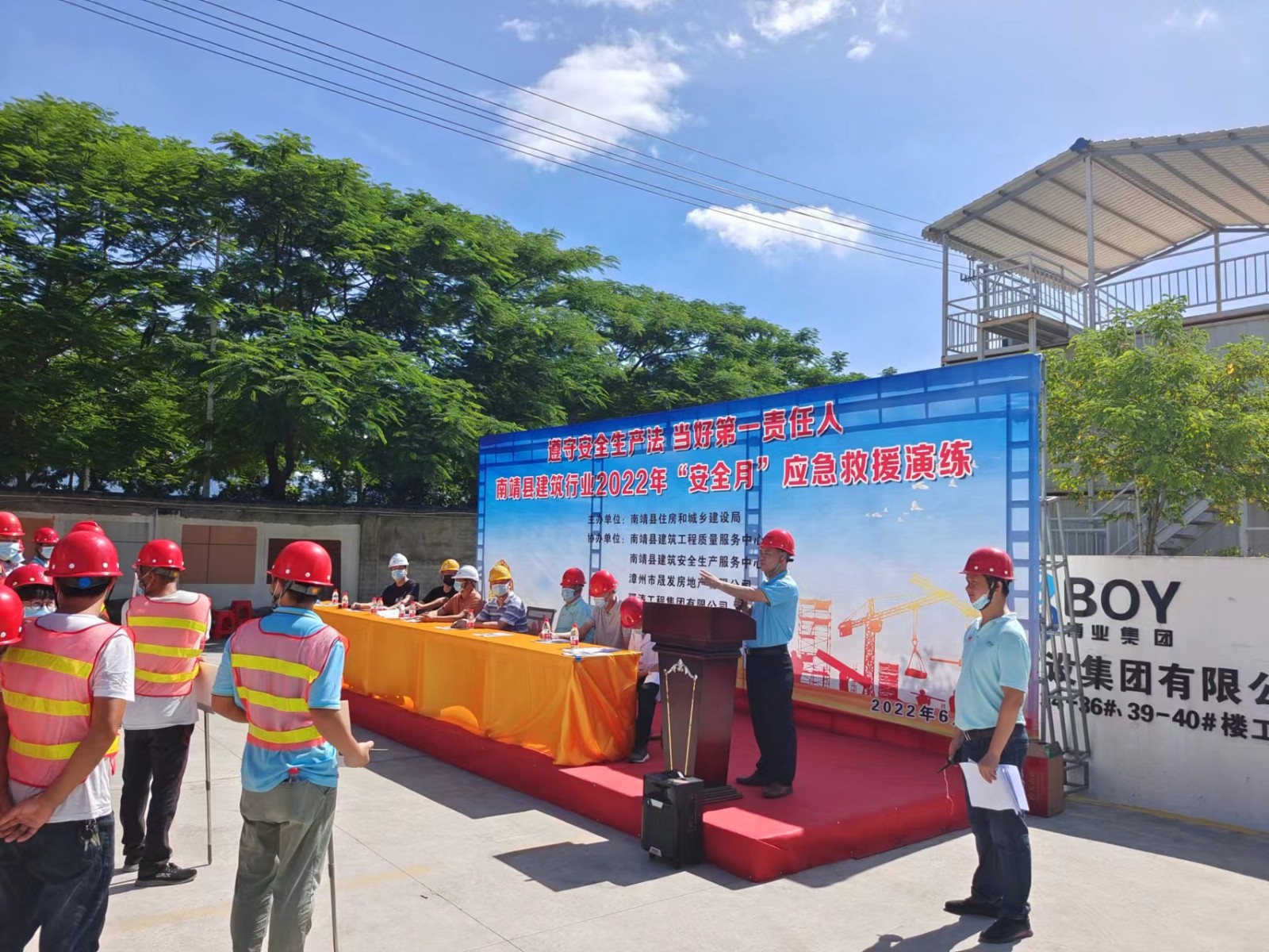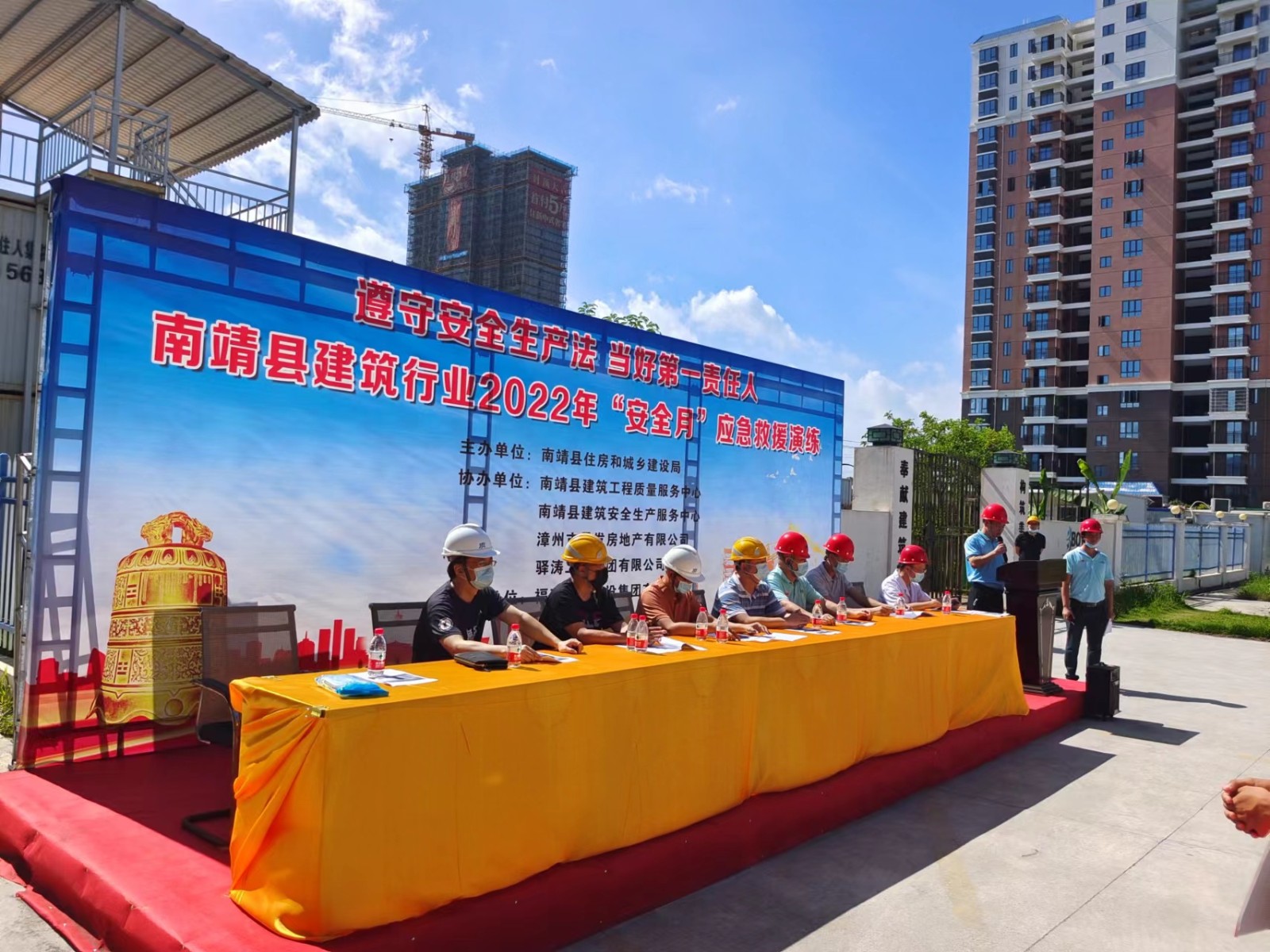 28日,公司承辦的南靖縣建筑行業(yè)2022“安全月”應急救援演練在晟發(fā)名都項目舉行,南靖縣建設局總工簡東海、南靖縣建設工程質量安全服務中心主任吳建清、漳州市晟發(fā)房地產(chǎn)有限公司常務副總陳奕、總經(jīng)理助理蔡志佳等單位領導蒞臨現(xiàn)場,公司副總經(jīng)理張春進、晟發(fā)名都項目第一責任人吳水熙、項目經(jīng)理林金水及項目部管理代表等人參加。本次演練意在提升全員應急救援響應速度和應急救援能力,普及急救安全知識,營造良好的安全生產(chǎn)氛圍。